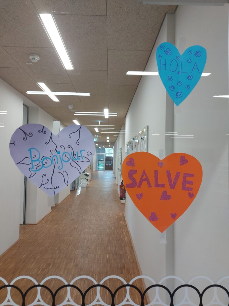 „Sprachen öffnen Herz und Geist“ lautete das diesjährige Motto des Tags der Sprachen. Die Schülerinnen und Schüler des KLGs gestalteten daher Herzen mit Begrüßungen, Sprüchen und Zeichnungen zu diesem Thema. Diese Herzen wurden anschließend im gesamten Schulgebäude aufgehängt.