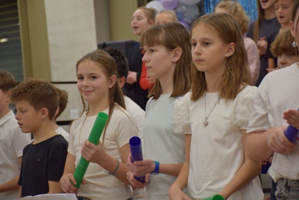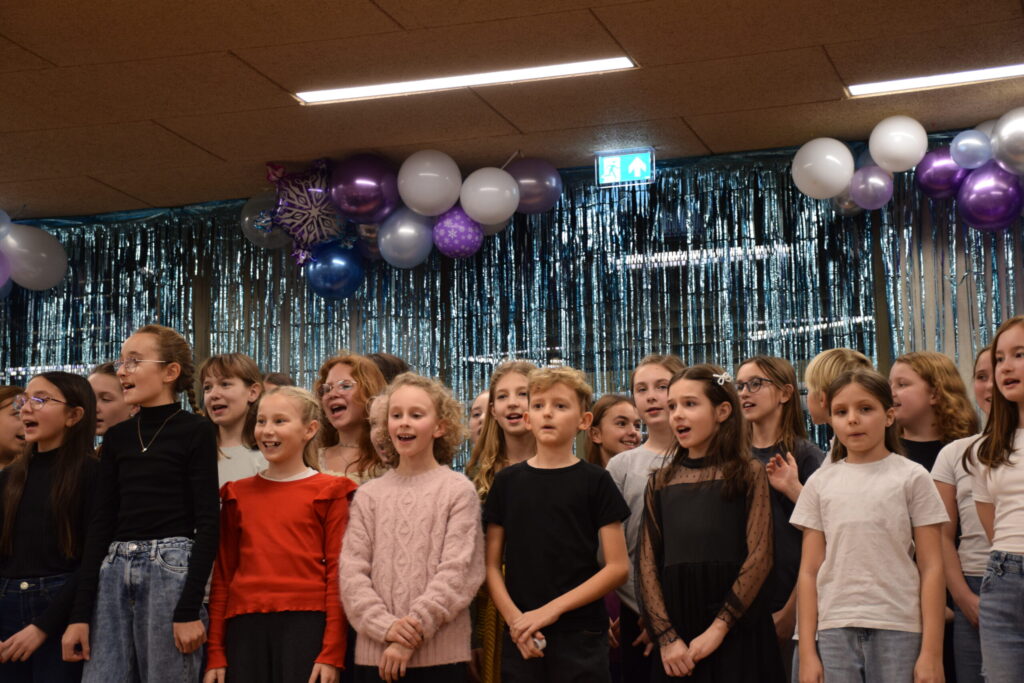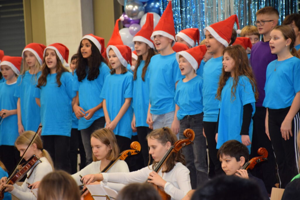 Auf der Bühne stand nicht nur eine Vielzahl junger Sängerinnen und Sänger, auch für die instrumentelle Begleitung waren zumeist die Schülerinnen und Schüler verantwortlich. Die Schulband mit Sängerin Denise-Marie Gold an der Spitze zeigte ebenfalls ihr Können. Direktorin HR Mag. Eva Zillinger und das Publikum waren begeistert und zum stimmungsvollen Abschluss sangen alle gemeinsam drei Strophen „Leise rieselt der Schnee“.