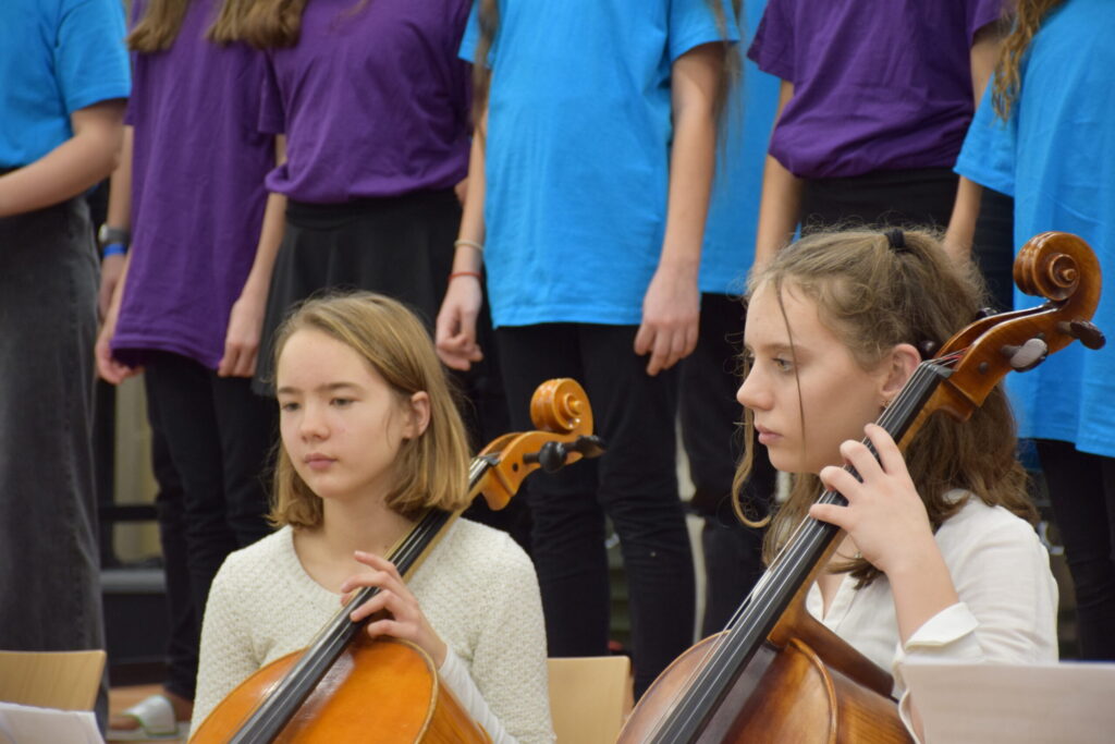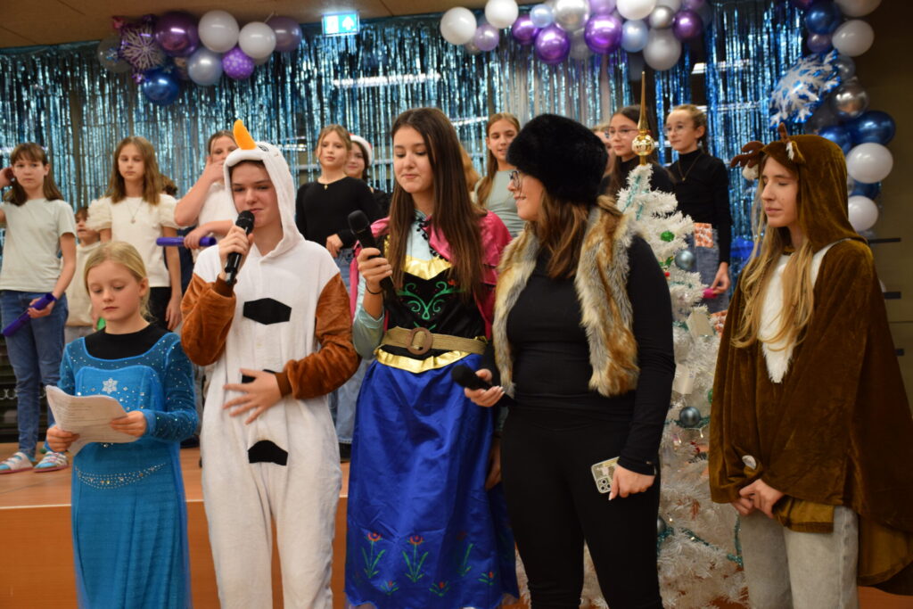 Mit unglaublichem Engagement erarbeitete Musiklehrerin Maria Petrovikova ebenso wie Fachkollege Joachim Unger mit den Schülern das Konzertprogramm. Den roten Faden durch die Aufführung knüpften Schüler mit der moderierend-performativen Erzählung „Olaf und die Suche nach der Weihnachtstradition“. Den Anfang machte „Das Lied der Erde“, „Eatnemen Vuelie“, das von der samischen Tradition inspiriert ist. Es folgten Beiträge wie etwa „The Little Drummer Boy“, „In der Weihnachtsbäckerei“ oder eine, aus der Feder von Joachim Unger stammende Variante des Beatles-Klassikers „Hey Jude“ alias „Weihnacht, du stille Zeit“.